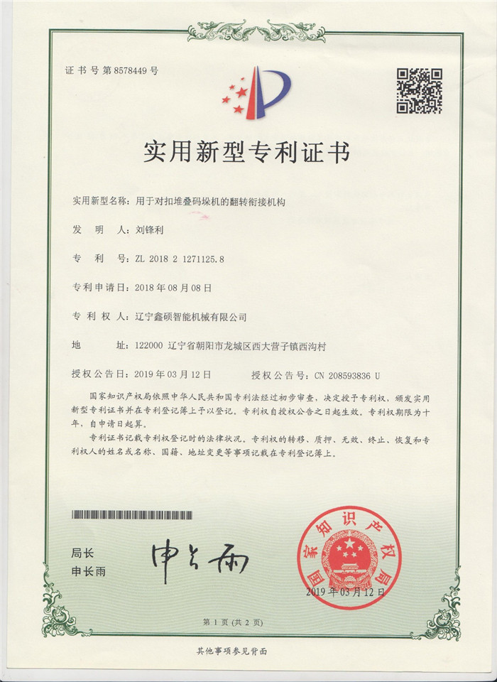 The utility model of the overturning and connecting mechanism used for the buckled stacking and palletizing machine