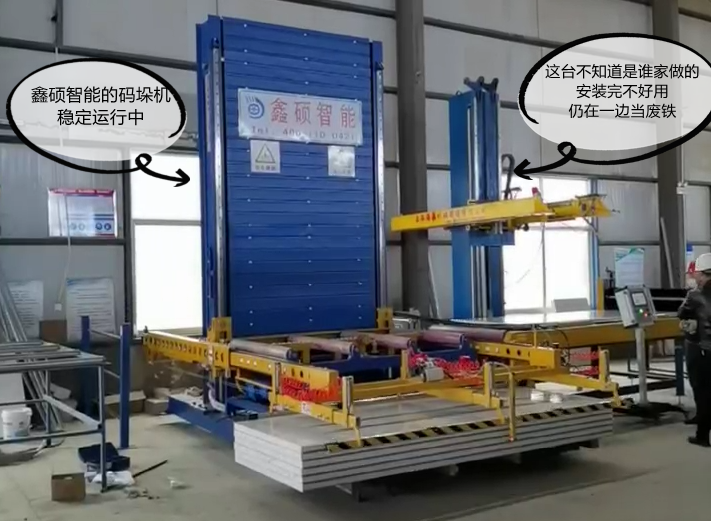 在客户的印象里,鑫硕智能的产品第一印象就是贵,但是贵有贵的道理,凡是用过鑫硕智能设备的客户,没有说过设备不好的。一方面是对设备的品质认可,另一方面是对鑫硕智能的服务认可。所以买东西不能总盯着价格,最重要的是看品质。鑫硕智能夹芯板码垛机,用过绝不会后悔